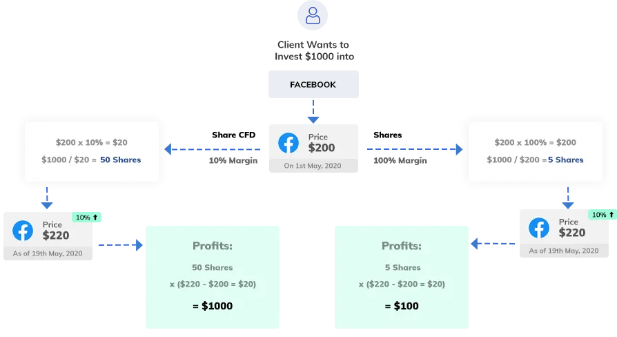 One of the biggest benefits of trading CFDs on shares is that you’ll be able to gain full exposure to the movement of stock prices with a small initial deposit.